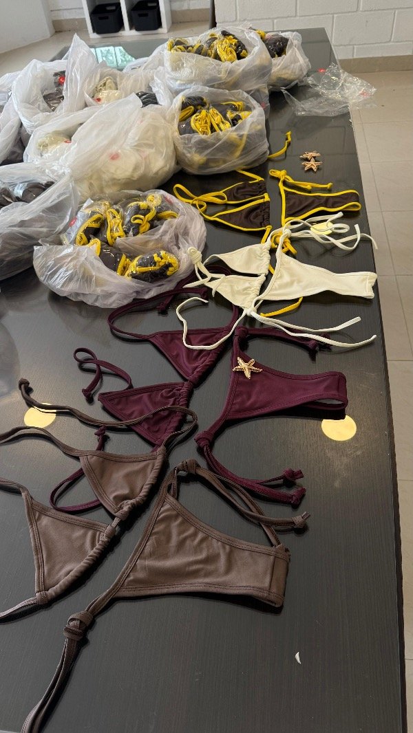 Confeccionada en lycra pesada de colores lisos. El top es un triangulito con tiras corredizas para ajustar y atar en cuello y espalda. La bombi es estilo colaless para atar a los costados. Nuestras bikinis tienen cambio